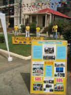 【明慧網2003年11月14日】2003年8月16日星期六早晨,瓜德路普(Guadeloupe)法輪功學員在一個叫「黑角(Pointe-Noire)」的小城的市政府廣場上介紹法輪功,講述法輪功被迫害的事實,控訴江澤民集團的「反人類」罪行。遊人了解後都非常震驚,這樣和平的一種功法竟在中國遭到迫害。