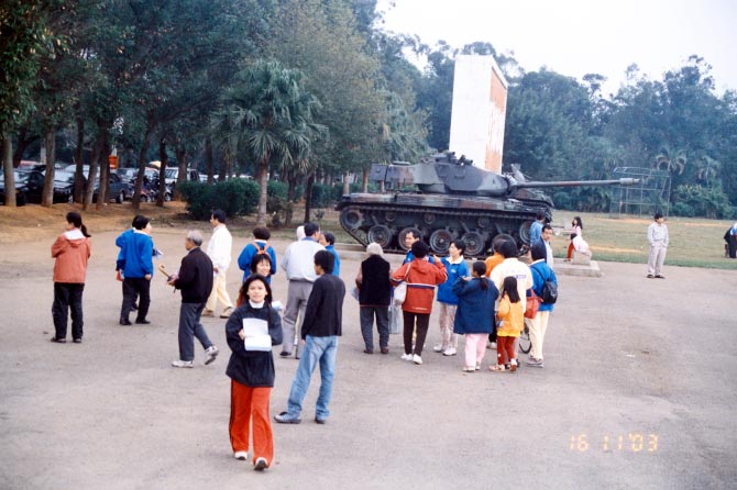 【明慧網2003年11月22日】中壢龍岡是台灣陸軍重鎮,龍岡大操場是軍隊操練的場地,沒有軍事活動的時候開放給民眾休憩運動。如果天氣好,假日人潮洶湧,大法弟子已經無數次在那兒煉功洪法。
