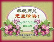 在新年即將來臨之即,我們部隊家屬大法弟子向慈悲偉大的師父問好!祝師父新年快樂!請師父放心,我們一定走好最後的每一步。