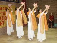 2003年2月1日,部份印第安納州大法弟子在普杜大學中國學生會主辦的春節聯歡會上,用歌聲對中國留學生們表達了新春祝福。一曲《緣聚今朝》,和兩位西人弟子用中文演唱的《為你而來》深受歡迎。兩位西人弟子在觀眾的熱烈掌聲中謝幕後,就有學生紛紛前來道賀,並希望下一次的聯歡會上還能聽到他們的歌聲。當時在場的一位學校日報記者也採訪了他們。
