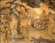華夏丹青藝術發源於中國古老的半神文化,其藝術風格與精神內涵深深影響著世界文化藝術。不論是早期的以神靈勸誡為題材的繪畫作品,還是後來的以人物、山水、花鳥為題材的作品,都展現了中國古老傳統繪畫的深奧內涵及當時各朝各代的社會文化。中國古人創作藝術的靈感都來源於內心的平靜與內在的精神修煉。在中國古代社會,各行各業都講究調息、運氣,李洪志先生在《轉法輪》中這樣講到:「那個時候上學的人,都要講究打坐,坐著要講姿式的,拿起筆要講運氣呼吸的,各行各業都講淨心、調息,整個社會都處在這麼一種狀態。」 其實,中國曆代國畫大師都是以修心養性為主,待人接物總是把他人放在第一位,創作出的作品不僅可陶冶人的情操,還可引導人們向善,告訴人們要擁有一個慈悲、祥和的心境。這樣看來,把中國傳統繪畫藝術與修煉結合起來是再恰當不過了《轉法輪》中這樣寫道:「真正修煉得修煉你這顆心,叫修心性。」藝術家們放淡各種慾望,才能真正擁有豁達祥和的胸懷,藝術境界才能昇華上來。如果後人能領悟到真正的藝術應與修煉結合的重要性,就真正能體悟到藝術的真諦及生命的價值所在。