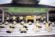 12月22日,青年和體育局主任進一步邀請我們參加在Lapangan Merdeka舉行的全國體育日的活動。此次體育日的活動參加者多達1,000多人,是講清真相的大好時機。我們應邀進行了功法演示,並正面介紹大法。通過這次活動,大法在印尼人民,尤其是蘇門達臘人民心中留下了美好的形像。