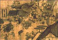 唐代漸漸隱去後,隨之而來的宋朝畫家在人物,山水,花鳥畫上都有著新鮮的創意。《清明上河圖》畫風細緻,淳樸,活潑傳神的人物性格描繪起到了畫龍點睛的效果。此圖從右至左,由郊外到市區,細緻生動地描繪了當時北宋都城汴梁(今河南開封)清明時節繁榮的景象。全圖共分三段。首段著墨於郊原景色。郊外遠處的山,樹,船隻與近處的草木,莊稼,村舍,人物勾勒出由遠到近的層次,默默地有著一種「山水總相宜」的情趣。中段著墨於虹橋之景。橋頭攤商櫛比,車馬行人川流不息,生氣盎然。末段著墨於城內街景,歌樓酒肆,作坊醫家,各色人物各行其事,極具欣賞價值。此幅畫的絕妙之處除了對舟車,市橋,郭徑,草木,山石,牲畜的細微刻畫之外,對人物形態的捕捉與對其所處位置的巧妙合理嚴謹地安排是此幅作品的精華所在。各色人物共1643人,形態生動,他們或是站立於郊外田野,或是辛勤耕作在田間,或是敲鑼打鼓辦喜事,或是聚集鬧市買賣遊玩,或是輕舟蕩漾於河中,或是垂釣捕魚,或是走親訪友,或是問候交談,等等等等。整幅圖著色淡雅,主要以青黃為主,壯觀的場面,細膩精確的畫風令人嘆為觀止。此幅巨型風俗畫,雖意境並不深遠,但極具歷史文獻價值。由於當時的社會經濟繁榮,開始表現世俗生活的風俗畫更加受人青睞,這與以往的重視精神境界的藝術品位有所差異。
