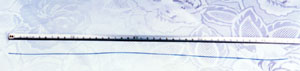 2003年2月17日晚睡覺,我感覺腳後跟上好像扎了個刺,掛住被子時鑽心的疼,第二天早晨老伴一看是一個尖刺在外面露著,就拿剪指甲刀夾住想剪下來,可是剪不斷,往外拽,越拽越長,竟然拽出一根直徑1毫米、長43.5釐米,似乎電線一樣的東西。後經到醫院了解,才知是一次手術中留在脖子靜脈中的導絲(見下圖),半年後它居然從腳後跟出來了,這在常人中是不可想像的事情,但在大法弟子身上卻奇蹟般地出現了。