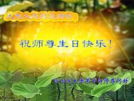 師尊:在您生日即將到來之際,我們懷著無比崇敬的心情對您說一聲:師父,祝您生日快樂!人間的語言實在無力而又蒼白,用盡辭海中最華麗的詞彙也無法表達我們這一刻的心情;只有默默地精進---朝著真善忍的標準邁進、再邁進!我們珍惜這千古難逢的機緣,我們將永遠珍惜我們與您同在人間的日日夜夜!