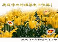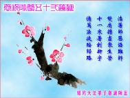 在5月13日這永載宇宙史冊特殊日子到來之際,我們更加感受到師父您給予了我們大法弟子無窮的智慧和無窮的力量!我們更加感受到師父您「大法度唐人」之佛恩浩蕩!我們更能理解師父您「只有丹心照後人」之偉大慈悲和無量苦度!用盡人類的語言亦難表達我們對慈悲偉大師父您的感恩之情!我們知道您為我們安排的正法修煉之路即將結束。請師父放心,我們一定遵照您的要求做好當前的三件事,旦迎「一夢萬年終靠岸」之日即隨師您重返家園。