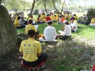 2003年5月5日,美國加州大法弟子應邀走進南加州爾灣大學課堂,向學生們介紹法輪大法。學員簡單介紹大法後,大學生們分成了四個小組,由法輪功學員教功。這些年齡不等、膚色不同的學生們個個學得認真,十分投入。