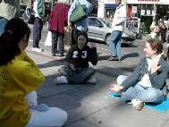 5月10日,新西蘭奧克蘭、漢密爾頓大法弟子在奧克蘭遊人眾多的覓神灣(Mission Bay)集體煉功,發正念,並向遊人散發真相材料,慶祝世界法輪大法日。