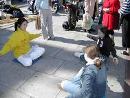 「法輪大法好 漸入世人道」──美國首府華盛頓特區慶祝世界法輪大法日活動紀實。五月十日上午,大法弟子在首府華盛頓DC國家廣場舉行「2003年世界法輪大法日」的慶祝活動。熙熙攘攘的遊人駐足觀看大法弟子們的表演的歌曲、舞蹈、詩朗誦等藝術節目、功法演示,人們仔細看著「正法之路」圖片展,閱讀著大法弟子們遞上的真象資料。大法弟子與世人形成了一片祥和融洽渾然一體的場面。