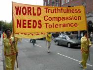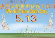 三年前(2000年)的5月13日,為紀念師父首次傳法,為讓人們進一步了解法輪大法,為呼籲儘快停止對法輪功的迫害,在世界各地學員的倡議下,經當時全球的十幾個法輪佛學會共同協商,決定將每年的五月十三日定為「世界法輪大法日」。