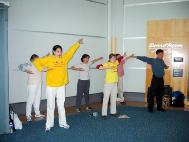 二零零三年五月十五日,大法弟子於早上十點抵達目的地後,便掛上德文及英文的橫幅,展現法輪大法好和揭露大法弟子在中國所遭受的殘酷迫害。大法弟子們有條不紊地煉功,發正念和向路人發傳單講真相。請願活動直到下午六點才結束。現場氣氛非常融洽祥和,兩千多份資料被分發一空。