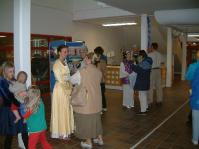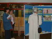 星期五,我們展出了用於圖片展的部份圖片。圖片展示出了和平的法輪大法修煉者和殘酷鎮壓,二者形成了鮮明的對比。同時我們也看到了人們對此的反應。