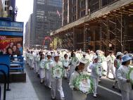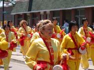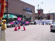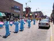 遊行隊伍由腰鼓、唐裝,秧歌,綢子舞隊等開路,約有一千多名學員參加。腰鼓隊的學員充滿豪情,綢子舞、仙女舞學員手提花籃翩翩起舞,輕盈飄逸,遊行的學員們神態慈善平和,給過往行人和附近商家的員工送去了來自大法弟子們的美好祝願。