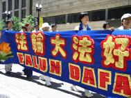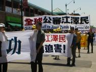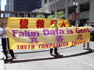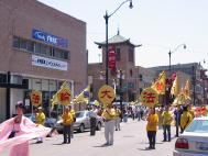 【明慧網2003年6月22日】6月21日,法輪功學員在芝加哥市唐人街舉行了盛大的集會遊行,慶祝大法洪傳11週年,並呼籲全世界人民(特別是全世界華人)加入在道義法庭和人心法庭對血債累累的江澤民大公審。