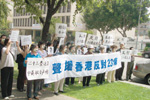 南加州集會反對香港23條立法。美國之音6月28日報導,南加州一些民間團體和國際組織星期六在中國駐洛杉磯總領事館外面聯合舉行抗議集會,反對香港23條立法,並且聲援7月1號將在香港舉行的「反對二三,還政於民」大遊行。抗議者們戴著象徵禁止言論自由的印有一個大黑叉的口罩,舉著反對23條立法、維護香港自由民權等標語牌。代表們在集會發言指出,北京和香港當局逆世界潮流而動,不顧香港公眾的抗議和質疑,試圖把壓制中國大陸人民的一套概念模糊的法律法規擴展到香港實施,不僅將使香港現行的民主制度倒退,而且將限制香港人的基本公民權利,從而危害香港的國際形像和投資環境。