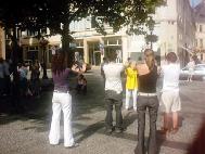 圖片報導:2003年7月12日,奧地利法輪功學員在中國大使館前集會,要求立即停止對法輪功學員慘無人道的鎮壓。