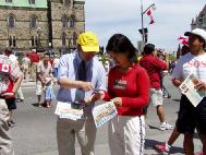 值此暴力發生期間,在美國中西部的首善之都芝加哥,法輪功學員為營救在中國大陸非法關押受迫害的法輪功學員二十四小時和平請願,贏得了芝加哥市民的感動與支持。在芝加哥華埠舉辦百年首次盛大遊行,深具華貴豔麗與中國傳統特色的表演,令當地人稱讚不已,連老華僑都說半世紀來沒看過這麼精采的表演。法輪功五套動作優美的功法展示,不管在哪裏表演都是世人矚目的焦點。壯觀肅穆的遊行隊伍在芝加哥市中心穿梭,民眾從法輪功學員拿到真象材料都迫不及待地閱讀。怎麼同樣在美國的土地上,芝加哥就能有幸享受到法輪功傳達美好的訊息;在紐約則遭有心人士挑撥製造仇恨爭端,驚傳暴力衝突事件,卻何其不幸。