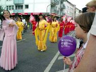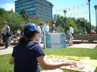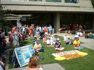 【明慧網2003年7月4日】芝加哥每日先驅報2003年7月2日報導,兩名法輪功學員似乎渾然不覺好奇的行人,盤腿打坐,雙眼微閉,優雅地移動雙臂。