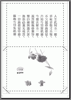 (3) 可在紙袋上插入圖片(「插入」->「圖片」->「來自文件」),打上講真象短語,或紙袋內容的說明等。注意:插入的圖片的尺寸不要超過單元格尺寸。我們從明慧網下載了些VCD封面圖片,經過加工,我們給放在紙袋正面。請見兩款成品: