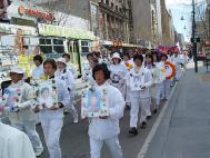 ◇在ROVANIEMI市中心廣場,學員們向市民展示功法,發真象傳單。第一天當大家準備離開時,從人群中跑過來兩位年輕女孩兒,說「能不能教我們打坐?」話音沒落就坐在地上雙盤起來,學了神通加持法後,滿意離開。第二天,很多人主動來拿資料,說看了報紙報導,很想了解更多情況。我們在兩小時內發了上千份。一位路人說「電視上譴責了對法輪功的迫害,我們都很支持你們。」一位小男孩一邊按著自行車鈴,一邊說「你們幹得很好。」一位老先生拿了資料到一邊去讀,讀完以後走過來對學員說「真理必勝,上帝保祐你們。」