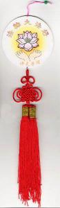材料:廢舊光盤(可用包裝光盤上下用的白盤,或刻廢的光盤)、如意結(批發不到一元錢)、銅環、紅繩