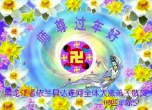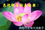 請允許我代表瀋陽地區全體被非法關押、迫害的大法弟子向師尊問好!感謝師父的慈悲與救度!祝師父新年好!