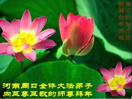 師尊:周口全體大法弟子想念您!千言萬語無法表達弟子們對您的崇敬!在新的一年裏,我們要多去執著,整體配合,共同做好師尊教導的三件事,不辜負師尊恆古的苦度。