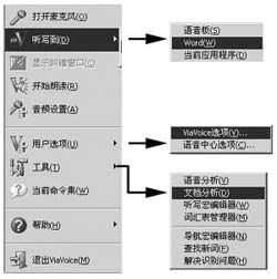 ViaVoice的功能是在稱之為「語音中心」的選項下,通過一個下拉式菜單來實現的(如圖2)。