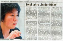 當我2歲的時候我就跟隨媽媽得法了,媽媽總是帶我去集體煉功。1998年我參加幾千人的集體大煉功,那天,有記者拍下我打坐的照片,登在「羊城晚報」上,報紙上都說法輪功好。那時我也有一個幸福的家庭,我知道煉功要做好人,修「真善忍」,可是突然有一天江澤民就鎮壓了法輪功,我的媽媽多次被關進了監獄。