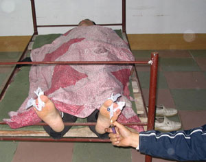 這樣的事情每天都在發生著。吉林省榆樹市32歲的法輪功學員李淑花2003年9月24日被警察從家裏騙走,讓她到派出所寫一份材料。16天後李淑花慘死監獄,遺體左眼深陷、眼眶發青,全身布滿紅點,解剖發現腹腔裏有大量血水。同時遭關押的丈夫楊佔久曾親耳聽到妻子遭警察毒打時聲聲慘叫(楊佔久後來被判7年,現關押在吉林省四平監獄)。公安內部有人私下透露,李淑花當時被警察打瞎眼睛後滅口。