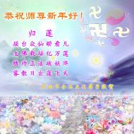 在您的慈悲呵護下,我們的思想不斷昇華,在助師正法救度世人中走過又一年,我們非常的想念您,慈悲偉大的師父。我們在新的一年中,緊跟您的正法進程,做好三件事,救度世人,完成我們的史前大願。