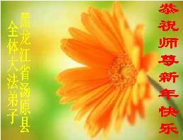 師尊新年好!師尊辛苦了!師尊為救度宇宙的眾生付出了多少心血,世上已無法用任何語言來表達大法弟子對師尊的感激之情。值新年來臨,浙江省椒江、黃岩、路橋、臨海、天台、溫嶺、玉環等地的全體大法弟子(包括仍在遭受人身迫害被非法關押的大法弟子)敬祝師尊新年好!請師尊放心,不管前面的路還有多艱險,大法弟子一定會緊跟師尊,持之以恆做好三件事,直至法正人間的到來。
