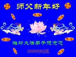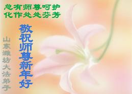 敬愛的師父:您好!值此新年到來之際,濰坊大法弟子向敬愛的師父祝賀新年好!我們想念師父!