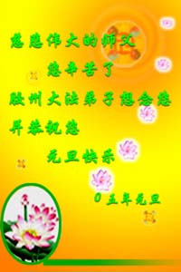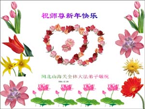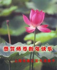 我代表上海市南匯區的大法弟子向師父問好,我們一定會按您的要求把三件事做好,請師父放心。恭祝偉大的師尊新年快樂!