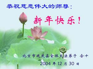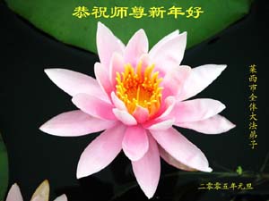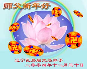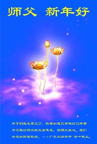 值此新年之際,我們撫順市的全體大法弟子萬分想念師父,盼望能早日見到偉大的師尊。請師父放心,我們決不辜負師父的慈悲苦度。做好大法弟子應該做的三件事,救度更多的眾生,走好走正最後的證實大法的路。
