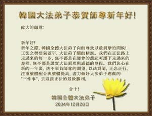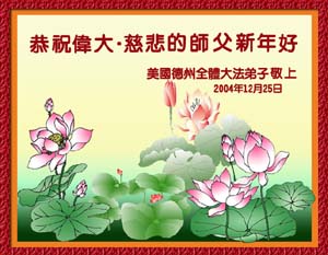 五年多的風風雨雨,五年多的坎坎坷坷,我們章丘大法弟子在師尊的慈悲呵護下走到了今天,值此新年來臨之際,僅代表章丘大法弟子向偉大的師尊致以最崇高的敬意,恭祝師尊新年好!請師尊放心,我們一定勇猛精進,同化大法,溶於法中,救度眾生,走好最後的路,把師尊的慈悲與浩蕩佛恩傳給眾生。