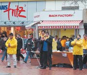 | 駐足觀看的人們 | 法輪功學員的展台 | |