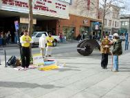 近日,部份西班牙法輪功學員來到中國駐西大使館前抗議江集團虐殺法輪功學員的惡行,強烈要求法辦惡首江澤民及其邪惡幫兇羅幹、劉京、周永康。過往行人看到被迫害致死和致傷的法輪功學員的圖片,非常震驚在中國發生的迫害罪行。一天主教女士在了解了真相後對我們說:「每一個人都應該有信仰的自由。」