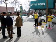 2004年2月21日中午,美國堪薩斯州學員們來到堪薩斯城著名的景點之一的「 廣場噴泉公園」向公眾徵集簽名,營救法輪功學員李祥春。幾乎每一位行人都接過了我們的簽名卡,以及真相資料,並祝願祥春能早日回歸。許多過路人還表示希望能夠早日將鎮壓法輪功的元凶繩之以法!
