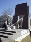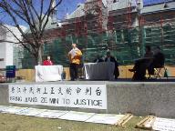 2004年4月10日上午,嚴冬酷寒之後的埃德蒙頓市帶來了勃勃生機。來往的人群都被市場旁的公園內正在上演的一齣模擬審江表演吸引住了,這是加拿大法輪功學員第三次在此設立模擬法庭公審江澤民。本次模擬審江僅一、兩個小時,幾百張支持張崑崙教授起訴江澤民的明信片便全都簽完。本市最大電視台「A-Channel」對審江活動作了詳細的報導。