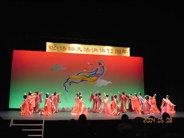 演出包括唐朝服飾,器樂,舞蹈,歌唱,鋼琴獨奏,詩朗誦和法輪功功法演示等, 從一開場的大型唐服舞蹈「萬古天門開」到中日文大合唱「為你而來」, 精彩的表演,不斷博得全場觀眾的熱烈掌聲和喝彩。全部由法輪功學員自己擔當的音樂會的編,排,服裝,器樂,舞台設計等贏得好評。