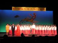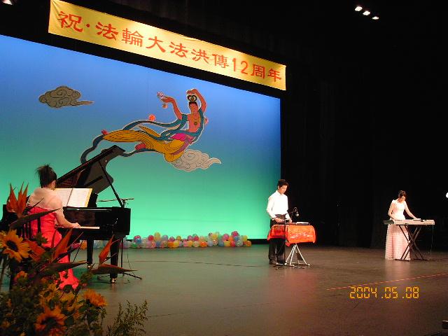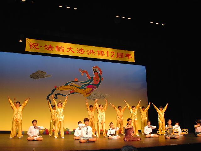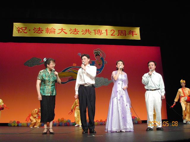 兩個多小時的音樂會,在台上演員和台下不少熱情的觀眾共同高唱「法輪大法好」的歌聲中圓滿結束。其間主持人分別宣讀了由日本國會議員牧野聖修、大前繁雄和服部三男雄先生特意為音樂會發來的賀詞。