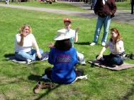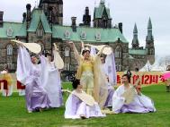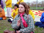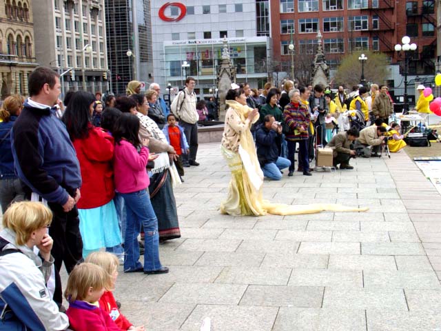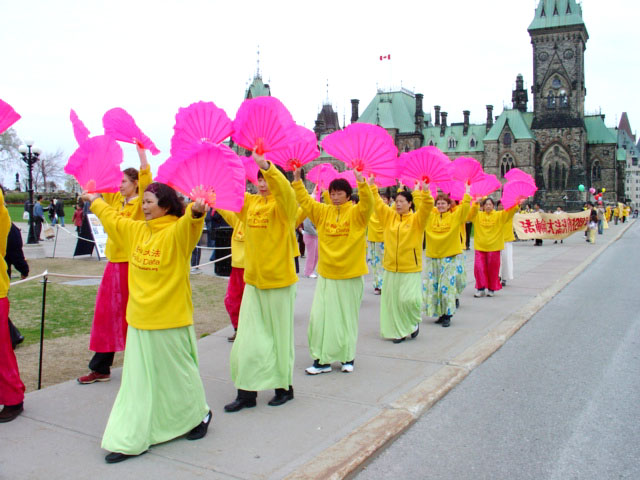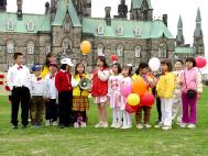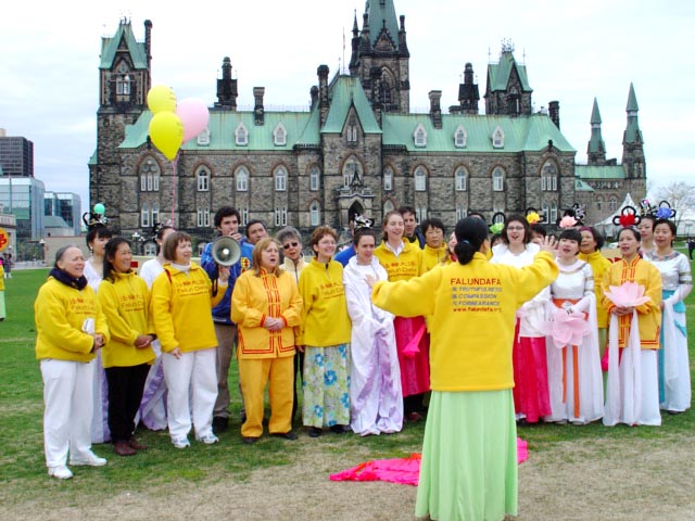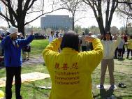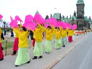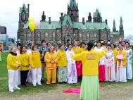 五月九日:在渥太華鬱金香公園慶祝世界法輪大法日一年一度的加拿大鬱金香節吸引了數十萬的遊人,學員在遊人最集中的地帶通過煉功和發放氣球等慶祝活動,吸引了眾多的遊客。