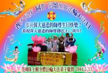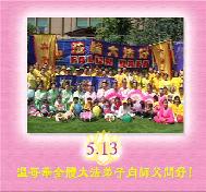 【明慧網2004年5月13日】(明慧記者古安如綜合報導)五月十三日,世界迎來了第五個「世界法輪大法日」,這個在五年前由世界各國法輪功學員倡導訂立的世界性節日,給人類帶來了讚頌法輪大法、讚頌「真、善、忍」的美好機緣。
