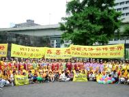 中國時報5月10日報導,來自全台灣各地約四千名法輪功弟子,九日齊聚在高市文化中心歡慶法輪大法十二週年紀念以及歡度母親節。高雄市副市長林永堅以地主身分歡迎他們來到友善的海洋城市高雄,並讚揚他們抖擻的精神,顯示大家都從「真善忍」中受福益。活動場面熱鬧,有四場次功法表演及精彩的腰鼓隊展演外,蓮花舞、彩帶舞、法輪功旗陣、扇子舞、採茶舞、舞獅陣、氣球陣、風車陣、劍陣、天使隊數千人,沿著文化中心進行遊行,宣揚法輪功真善忍。