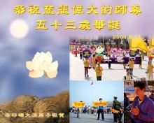 世界15地大法弟子恭賀師尊華誕暨法輪大法洪傳十二週年