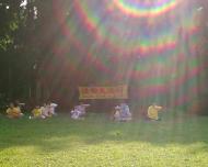 這樣祥和的場景不禁讓人想到在海峽的對岸,法輪功學員卻處處受到栽贓打壓。江氏集團在全國發起百萬簽名運動,以形成一種全社會反法輪功的壓力,連小學生都不放過。小小的小學生,不簽名就當不了班級幹部,甚至被迫退學。公安隨時隨地任意闖進法輪功學員家抄家、罰款、嚴密監視等等。所有法輪功學員的人身自由每時每刻都在受著威脅、隨時有被非法無故抓走的可能。透過台灣法輪功學員和小弟子們的煉功洪法和發真象資料中,也期待大陸的人權和信仰的自由能受到更多朋友的關注,期許這場不人道的迫害早日結束,讓更多人都能喜得這樣好,這樣純正的法輪大法!