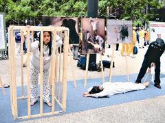 很多路人在經過展示時,都非常的震驚。一位美國男士不停的搖頭感慨:「這太殘忍了,他們(江氏集團)怎麼能這麼對待這些人?」還有很多人為之落淚。