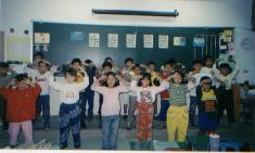 平時很多小朋友要求我教功,除了社團課外,時常利用課餘時間指導小朋友煉功。夏天到了天氣炎熱,有小朋友上體育課就要求煉功,問他們為甚麼那麼愛煉功,他們都說因為法輪功煉起來好舒服、好輕鬆。有小朋友常跟我說:老師你越來越年輕,我就鼓勵她學大法。有一個小朋友患有先天性心臟病,常常身體不舒服,不能做激烈運動,每次體育課就在旁邊發呆,有一天上課時她臉色發青,表示很不舒服,我鼓勵她學大法,她說不要煉,無論我怎麼說法輪功多好,她就是不煉,我改變祛病健身的話題,說到學法輪功要做真、善、忍的好人,並解釋這三個字的意思,講完後我問她「真、善、忍」好不好,她說好,就想學了。我叫她念「法輪大法好」,念完後她很高興的告訴我:她的病好了。以後她就跟我學法輪功了。