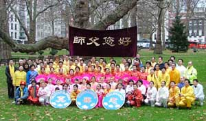 ![]() 英國倫敦集體煉功 | ![]() 2001年10月14日在英國倫敦鴿子廣場集體煉功 |